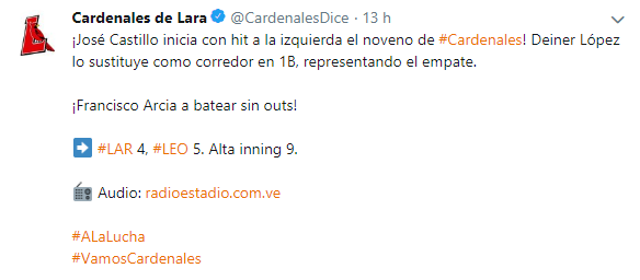 Los directivos, personal administrativo, jugadores de la Liga Venezolana de Beisbol Profesional y los ocho equipos que la integran, lamentan profundamente el trágico fallecimiento de José Castillo y Luis Valbuena, figuras del beisbol nacional, durante la madrugada de este viernes. Por tal razón se establecen tres días de duelo en la LVBP, por lo que […]