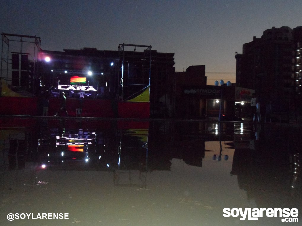 En horas de la tarde de ayer, en un mantenimiento a la fuente que allí se encuentra, hubo un fallo en las bombas de agua lo que provoco el desborde de agua de la misma antes de iniciar el evento, aproximadamente a las 6:00 PM ya había sido solventado, pero el estado de la fuente fue una total locura.