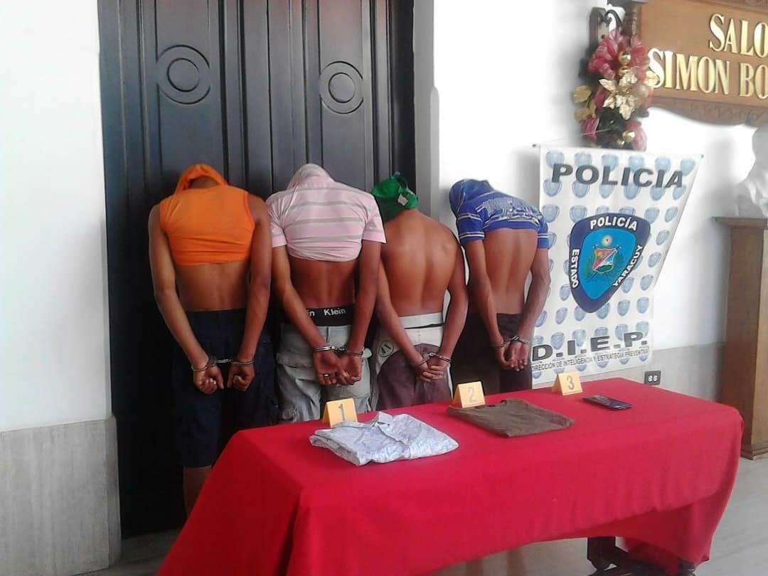 Los presuntos implicados no estaban armados al momento de la captura. Los mantendrán recluidos en la sede de la Policía de Yaracuy, ubicada en la avenida Andrés Bello, San Felipe, hasta la audiencia de presentación que corresponde luego de 48 horas.