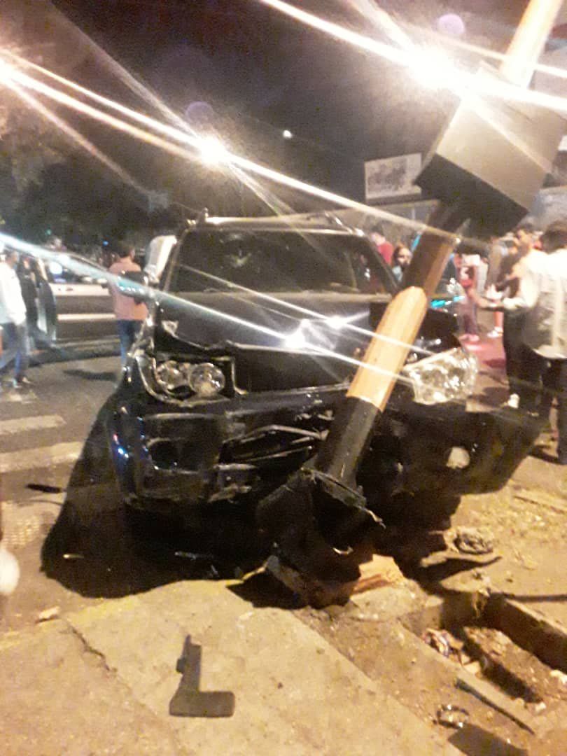Los vehículos que se encontraban en el festejo a lo larga de la Avenida Lara, chocaron ocasionando un daño grave a uno de los semáforo que cayó encima de la Fortuner color negra. Hasta el momento se desconocen los datos de los involucrado, no hubo heridos de gravedad.