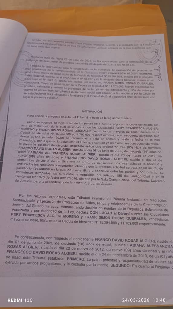 Respecto al ámbito judicial, se informó que la denuncia interpuesta por Santana ante el Ministerio Público bajo el expediente MP-135889-2021 carece de fundamentos técnicos y pruebas reales, razón por la cual se ha solicitado su desestimación definitiva. Paralelamente, Rosas ha formalizado una querella penal por los delitos de difamación e injuria ante el Circuito Judicial del Estado Lara, argumentando que el denunciante ha utilizado las redes sociales para atacar la reputación de empresas familiares con 25 años de trayectoria y proferir amenazas contra su integridad. Asimismo, puntualizó que Santana insiste erróneamente en involucrar a Francesca Algieri en estos hechos, cuando la realidad es que ambos se encuentran legalmente divorciados desde julio de 2021.