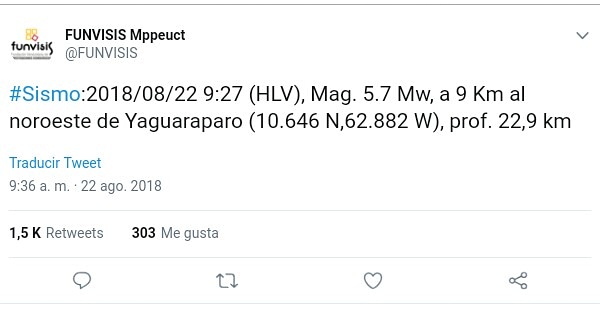 A las 9:30 AM de este miércoles 22 de Agosto, un sismo fuerte hizo alertar de nuevo al Estado Sucre y la Capital de Venezuela, pues la magnitud de 5.7 según FUNVISIS se hizo sentir en varias regiones centrales del país. Según el sistema sismológico de los Estados Unidos, la magnitud del sismo fue de […]